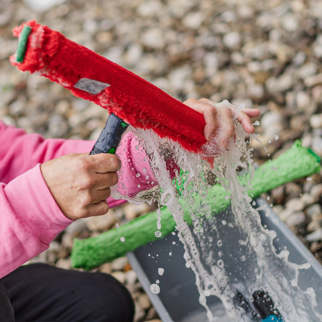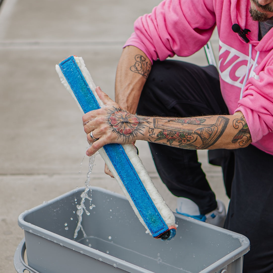 You should use a window scrubber whenever you plan to use a squeegee for window cleaning. If you do any traditional window cleaning, this means your scrubber will be your best friend. As a traditional window cleaner, your scrubber is the bedrock of your cleaning process; Squeegeeing cannot happen unless a cleaning solution has been applied with the scrubber. With that being said, the scrubber set will be the most frequently used tool next to the squeegee when it comes to traditional methods. A scrubber is responsible for applying a slippery cleaning solution, an absolute necessity for a smooth squeegee glide. It also agitates and removes grime that is stuck to the glass. Together, these things set the stage for your squeegee to leave a streak-free shine. Because your scrubber set will be the first tool you reach for on almost every window, it’s crucial that it feels right and performs to your standards so you can get started on the right foot.