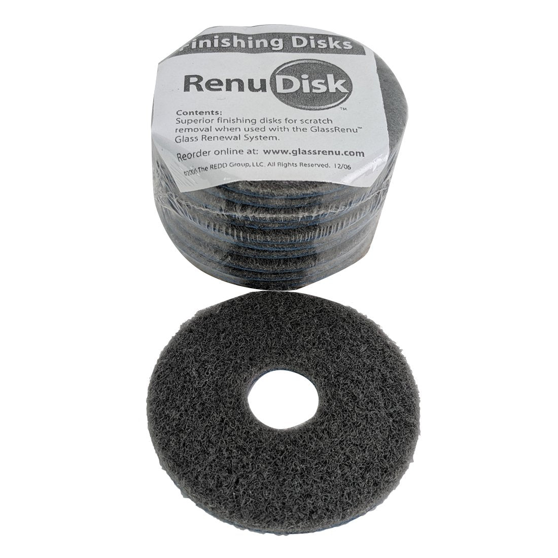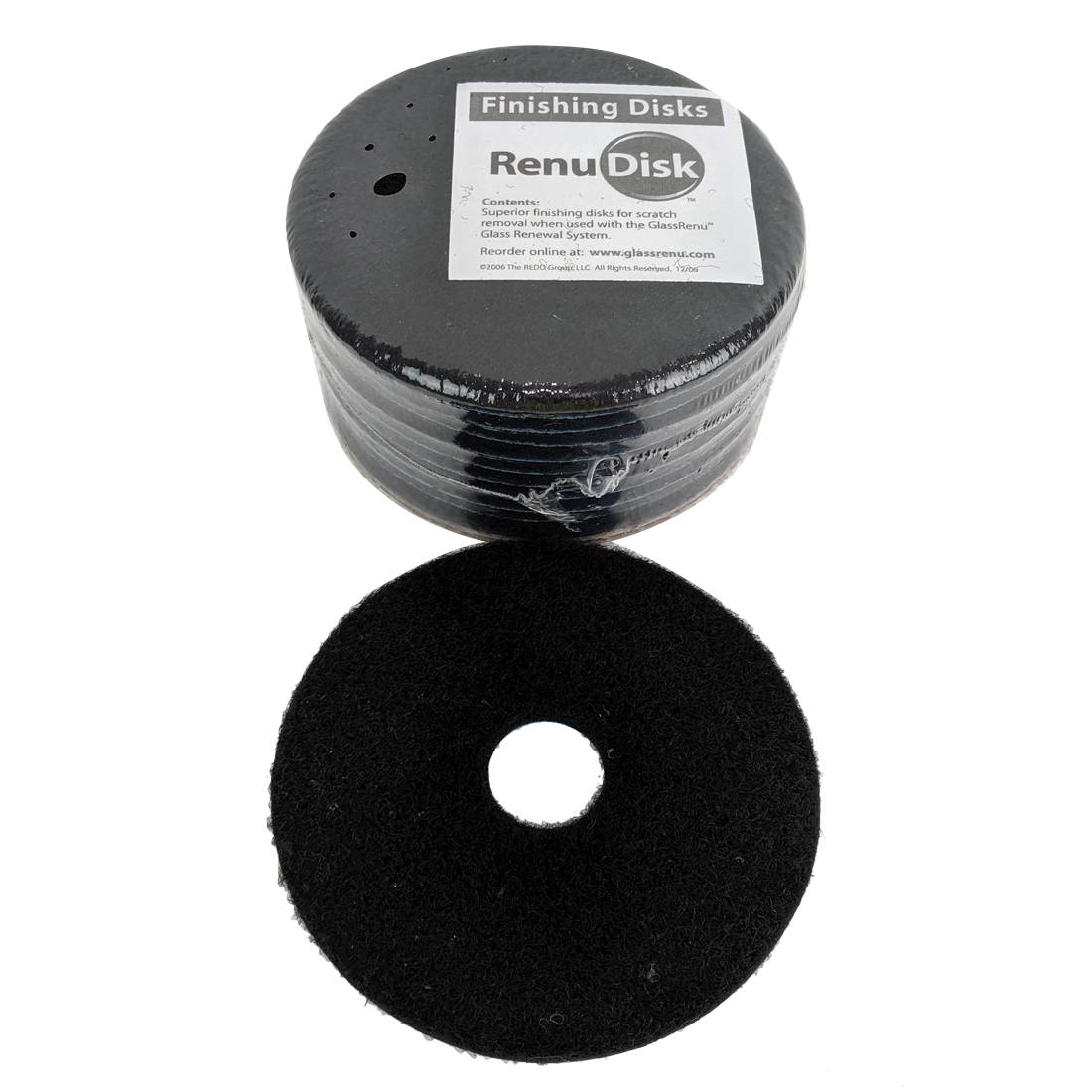 RenuDisks are the product of over a decade of research and development to produce the patented GlassRenu Scratch Removal Process. These propriety abrasive disks let technicians grind below the damage on glass surfaces quickly and evenly. The unique cushioned design allows for fast scratch removal without leaving marks or distortion even while working on deep scratches.