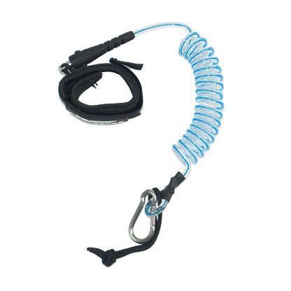 This product features a comfortable wristband and loop. This tool also has an adjustable velcro cuff, swivel sleeve attachment, stainless steel carabiner, and strong expandable coil. Now you can avoid dropping your tools from any height. Plus, it's easy to use. Simply use the carabiner to attach any tools. Then, run the black cord loop through the handle hole, then the carabiner through the loop.