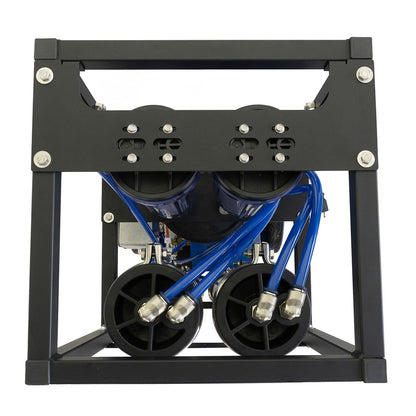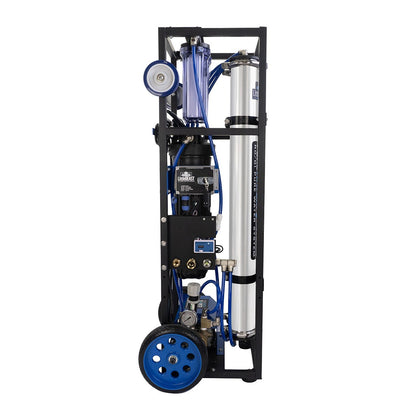 Uncage this "beast" of a water purification system; the Pure Water Power Little Beast RO/DI - 115V. This pure-water system is a powerful, compact workhorse with all of its components arranged on a powder-coated steel frame. When using tap pressure alone, it produces up to 1 gallon per minute. When using the included 115V booster pump, it can operate up to three waterfed poles at once and produce 2.5 gallons per minute. Designed to be robust, rugged, compact, and versatile, this system is mountable on your truck or portable in the field with its wheels.
