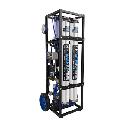 The Pure Water Power Little Beast RO/DI - 115V allows for spot-free rinsing. It is configured for optimal pure water cleaning and uses four types of filtration for the best and most economical total filtration possible.