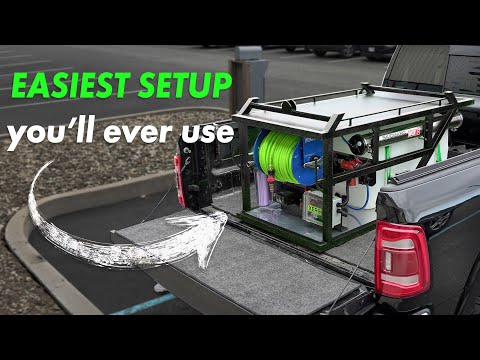 Jobsite setup takes only minutes. Simply pull up, unspool the 250-foot hose, flip the switch, and start working. The hose reel comes with a shutoff valve and two barbs; one for a high-flow hose and another for a standard pole hose. The integrated filtration system includes a 50-gallon tank, 10-inch sediment and chloramine filters, a 40-inch RO membrane, and a 40-inch DI cartridge to ensure consistent, spot-free results.