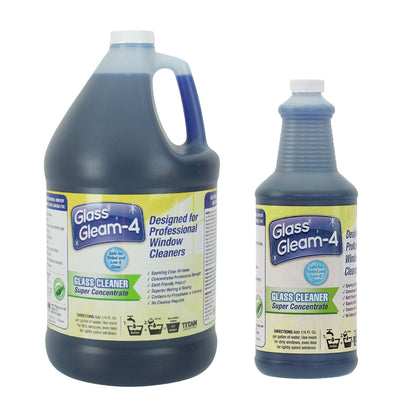 Glass Gleam 4, or GG4, is a professional window cleaning soap that has many benefits including: better results, kindness to hands, almost no bleed-back, drag reduction, perfect foam, nice smell, consistent formula, and lots more. This works well in areas with hard water. One gallon of GG4 makes 512 gallons. Use more than directed for dirty windows and less for lightly soiled windows. Special dispensing bottles are available for the perfect dispensing.