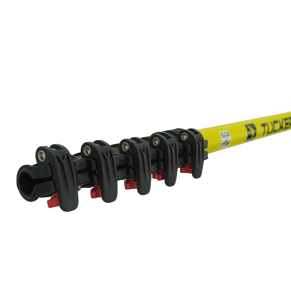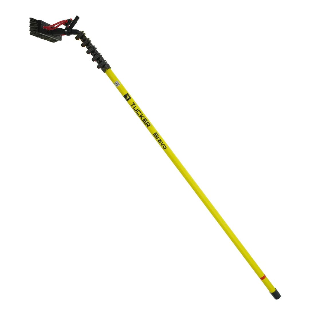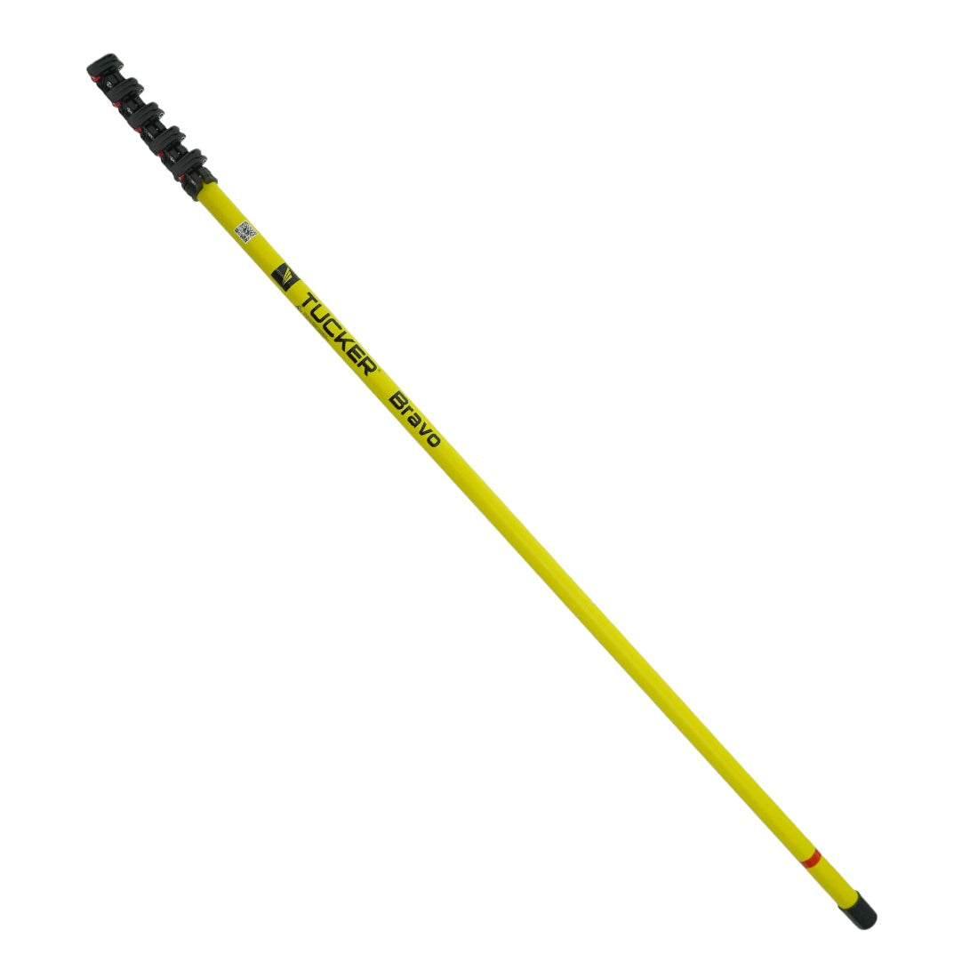 The 5-section Tucker Bravo Water Fed Pole is designed for commercial and residential window cleaners working 3 stories and lower. It is made in the USA of high-quality hybrid sections from carbon fiber mixed with fiberglass. These materials make it cost-effective but add a bit of flex to the pole when fully extended at 22.5 feet. At only 3 lbs, it is lightweight and collapses down to 5 feet 7 inches.