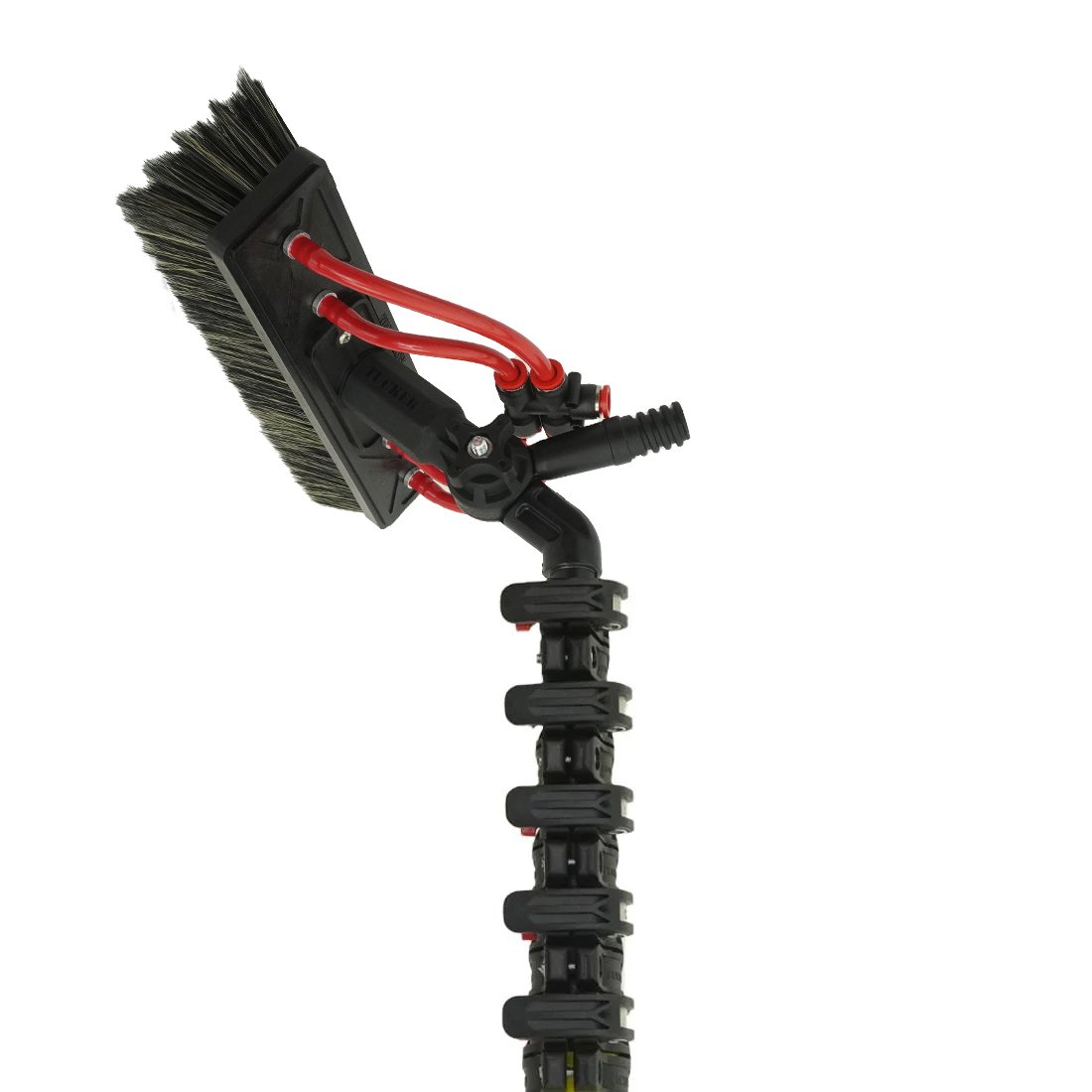 The Tucker Bravo Water Fed Pole features the Tucker V2 bolt-on clamps, allowing you to easily adjust each section, and the Tucker Glide Brush for smooth movement across the glass. This pole also comes with 100' of hose, a set of Male and Female Quick Connect Fittings, an Acme tip, and a Reach-Around Gooseneck.