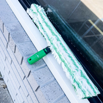 The MonsoonPlus Stripwasher is the ultimate in water retention from Unger. The extra long fibers on the sleeve allow you to scrub the window longer than traditional sleeves. The double stitched ends provide longevity and a scrub pad sits on one end for a little extra scrubbing power on stubborn spots. This sleeve was matched with the ErgoTec T-Bar that has an ergonomically designed handle. You can also lock it onto an Unger Telescopic Pole for high windows.