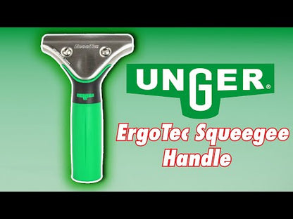 The Unger ErgoTec Handle is an ergonomic, lightweight squeegee handle designed specifically to cut down fatigue in your hands. This handle is equipped with a no-slip grip, that comfortably fits in your hand. The stainless steel head has a finger indent for total control on glass. The handle has a spring mechanism that allows easy channel/rubber change. The handle locks onto ErgoTec Locking Cone for maximum safety when using telescopic poles.