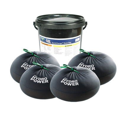 The patented resin bags from Unger are specifically designed to be used with the HydroPower DI systems. Quick and easy to change in seconds compared to loose resin. The design of the bag decreases channeling and optimizes the resin's longevity. They come in a handy pail for storage and transportation in your truck!