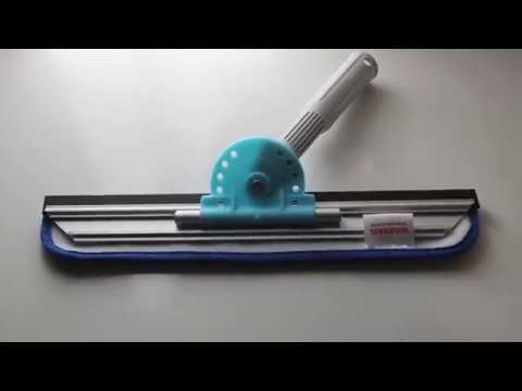 This specialty combination tool also features a double-pivot design so that the flat mop stays in constant contact with the glass at all times. Very handy for frames as well. Its angle to the window is shallower than other squeegees resulting in more defined and cleaner edges.