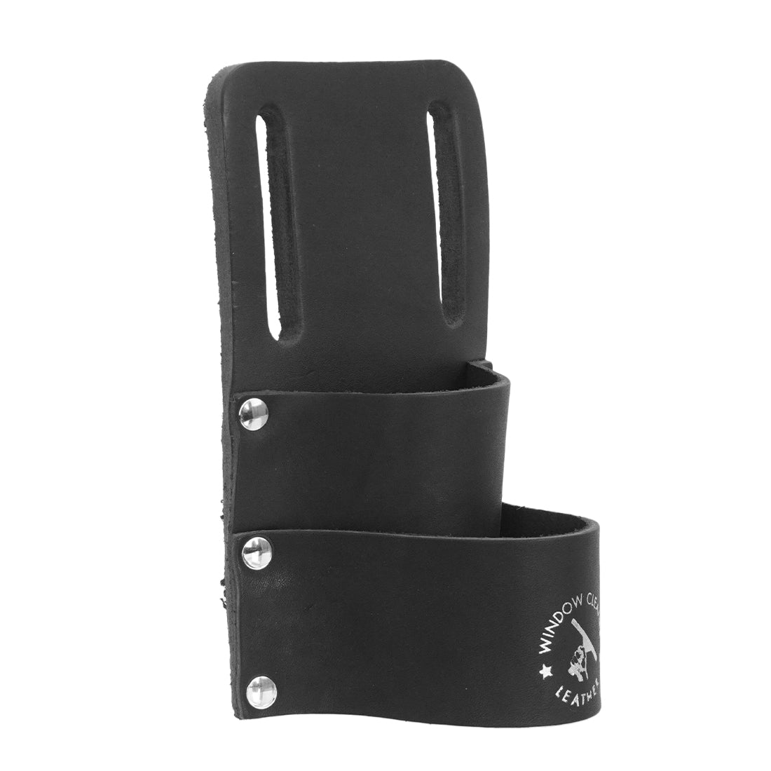No window cleaner wants to be fussing around trying to remember where they left their squeegee or scraper. Use the Window Cleaner Leather Model 4 to keep track of two of your tools. Load it up with your long and short squeegee. Or carry a squeegee and a scaper or towel. It's perfect for keeping your most used items right where you want them, securely attached to your belt. There are two large loops for threading your belt through to keep it safely in place. Durable leather and rivets hold this design together and it's built to last.