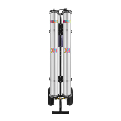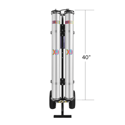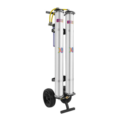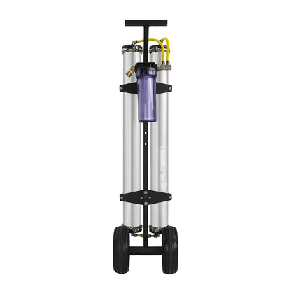 Crafted with precision and care by the skilled XERO team, the XERO DI Cart - Double boasts top-notch functionality. Constructed from premium materials, this cart features dual 40-inch DI cartridges housed securely in stainless steel casings, mounted on a sturdy powder-coated steel frame. Adding to its convenience, a pre-filter housing accommodates a 10-inch chloramine filter, while two no-flat wheels ensure smooth mobility across any terrain. For dependable connections, brass garden hose fittings are used, guaranteeing leak-free operation.