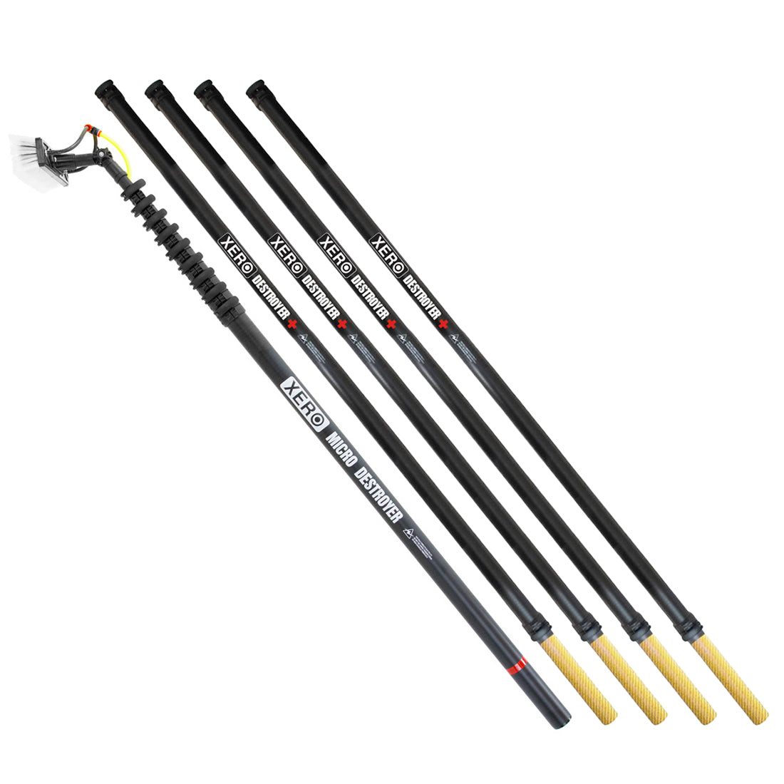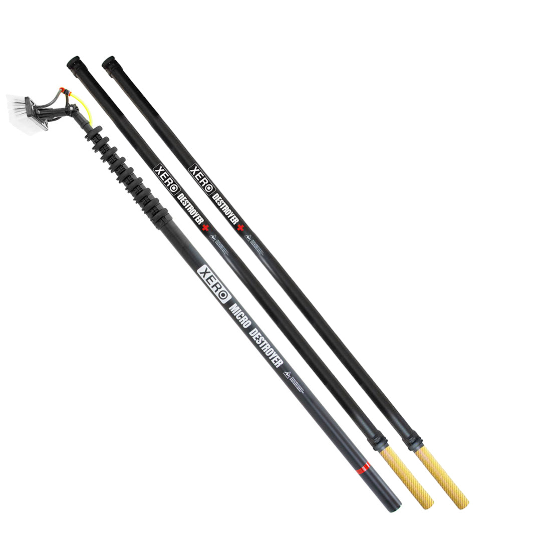 All poles longer than 30-feet include the XERO Destroyer+ Universal Extension. Sliding these extensions onto your pole will add an additional 10-feet to your 30-foot pole to reach the maximum of 70-feet. The bright yellow section is there to determine if has overextended.