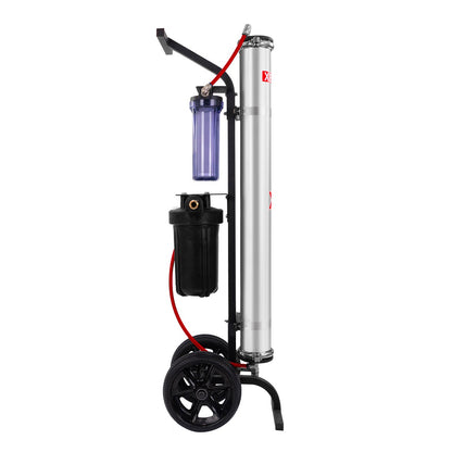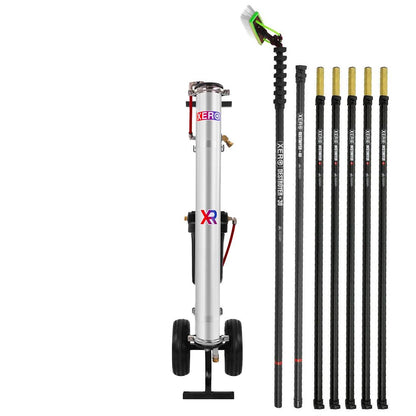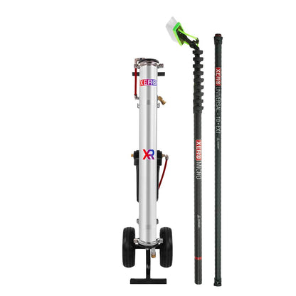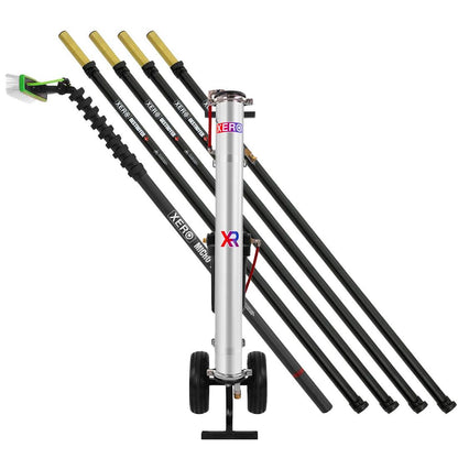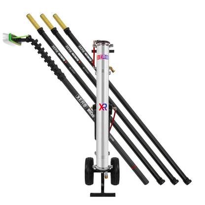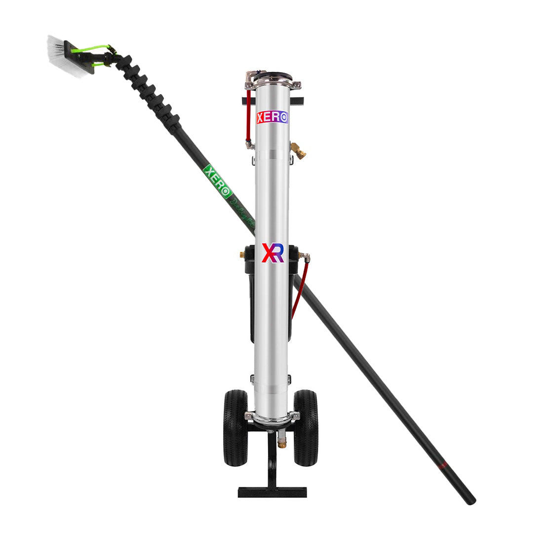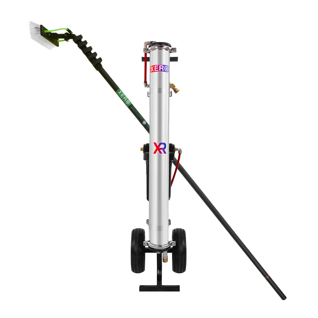 Whether you're new to the game and looking for a complete kit to get started or if you're a pro ready to expand your business, these waterfed packages from XERO cover all the bases. The XERO Pure is America's most popular purification system for window cleaning. Its adaptability and easy functionality make it a quick favorite. You can use the XERO Pure in three different modes. The standard mode is RO/DI, which filters water through three stages of purification to get it perfect for leaving spotless windows. If you happen to encounter low pressure, you can assess the water quality and choose to use just RO or DI filtration instead of having to add a pump to your system. Although it may use up your DI resin a little faster, you're able to get the job done. If you're working on a job that doesn't need spotless results, the RO-only mode is perfect. Using RO-only mode can also help to lower your operating costs! One of the great features of the XERO Pure is that it doesn't limit you to proprietary filters. Use your favorite resin and filters from us or any supplier close to home. Easily transport this lightweight unit around the job site and operate it standing or lying down. It is built around a strong frame with durable brass fittings. This unit has auto balance and auto flush features. No electricity is required to operate! It also includes lifetime support and a great warranty.